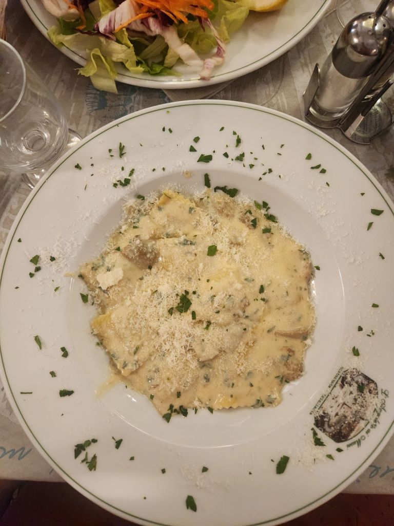 We found a restaurant where I had the best truffle ravioli and then headed back to hotel we are staying. We relaxed in the a/c with cold coke zeros and talked.