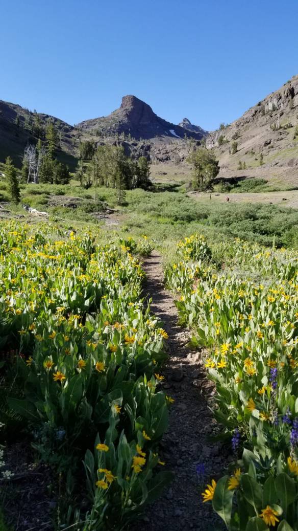 Wednesday morning we went to folks at 5 and us and jalen drove up to Sonora Pass to do a day hike. We made breakfast at the trailhead from out of the vehicle and watched the sun come over the mountains. The trail was about a 3 mile loop. I guess I was car or altitude sick because I threw breakfast up halfway there so I decided to go back cuz I felt pretty crummy. I was super disappointed. So the guys went up and swam in the lake which still had ice in it and were back at the car in decent time and we drove to the top of Sonora Pass where the Pacific Crest Trail goes through. There are hikers who need rides down to bridgeport so we picked up a guy from florida and hauled him down to town. He did stuff in town while we ate burgers at Rhinos Grille. Then we headed back up the pass and picked up another guy who was from Israel and brought him up to the top too which was cool. The israeli guy had just finished the mandatory three years serving in Israel’s army and now that he’s free he is hiking the PCT. Interesting day. Drove home and grabbed pizza to bring home for supper. After supper Morgan and I went and visited Johnny and Bertha for awhile.