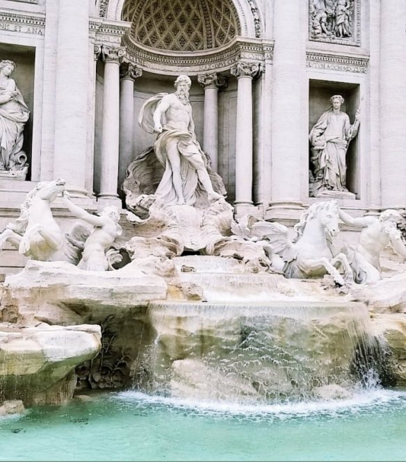 Our 1 hr flight here this morning served us croissants and swiss chocolate. I’d forgotten how much bread is a staple here! Like anywhere you stop is an array of 20 or so different kinds of breads, rolls, or croissant pastries. We flew over the Alps and such amazing mountains I’ve never seen. We arrived in cloudy Rome this morning at 9 and got a 24 hour pass for Rome transit. Then we caught a shuttle to our hostel. The Italian man driving was a menace to Italy’s roads. We saw speeds of 92 mph and on the bad roads here it was interesting. We are staying at a Meininger Hostel which we stayed at last year in Europe and they’re very nice. If we have someone in our room tonite it will be only one more person since there’s only four beds so that will be cool. We dropped our bags off in our room before catching a bus to see the Trevi Fountain, one of the most famous and oldest fountains in the world.