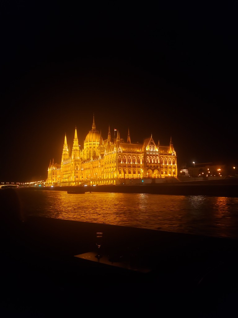 Sunday- We left Patio Hostel in decent time. We had to bring our bed linens down at this hostel which they sometimes have you do at more hostel, less hotel places. We took another FlixBus out of Bratislava and arrived into Budapest around 1 pm. Our first business was to walk along the Danube some more because we still hadn’t got enough of it. Then we took our bags and dropped them off at the Meininger Hostel which is essentially a cheap hotel but super nice. We went walking across the Liberty Bridge and up to the Gellert Hill Cave that’s part of a cave network and now is a church built into the cave and hillside. We found a pub close to our hostel called “For Sale” and decided to eat there. Inside the ceilings were low and everything was made of dark wood, with straw scattered on the floor and bowls of peanuts on the tables. Every available ceiling or wall surface was covered with notes from people around the world who had also eaten there so overall the fire risk of the place was high. Haha. Anyways Morgan had Hungarian goulash that was so good, and Madison and I had chicken in mushroom gravy with croquettes. It was a fun experience. After supper we got tickets to go on a Danube river cruise that started at 9. We ended up outside at the front of the boat sharing a table with a nice couple from London and had a good time with them. The cruise was fantastic with lavendar lemonade served for the ride and the glowing lights of the Budapest shores to watch. Everything that looks grand during the day looks so much more so all lit up on a clear, cool night. It was a highlight for sure.