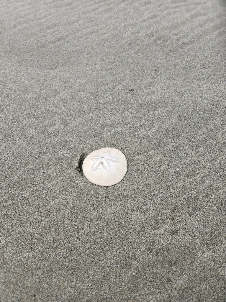 This morning we had granola and yogurt and coffee before we puttered back onto the 101 heading south. We spent most of the day driving in and out if Olympic National Park, surrounded by old growth forests of pine and ferns. We started catching glimpses of the ocean later and stopped for a walk on the beach at noon. Low tide with lots of rocks and sand dollars to see and we continued on our way until we reached Aberdeen, WA, which I was wholly unimpressed with except for a shady thrift store we stopped at where I found a painting and a wee pottery mug on half-off day so it was $1.89 total. Yay. We also lunched at a place called Breakwater Seafoods where we had the best crispy, non-greasy fish and chips I’ve ever eaten. And also clam chowder. We drove along the ocean a large part of the afternoon and I just took deep breaths of that yum salt air and relaxed with a crossword while Morgan drove and Mom slept. Tonight we are staying by Long Beach, WA, quite close to the Oregon line. There is a supposedly a bear terrorizing the place we’re staying so I’m hoping for an interesting evening. We wanted seafood fettuccine but we can’t find good seafood at this exact spot so we’re doing chicken instead. Cheers!