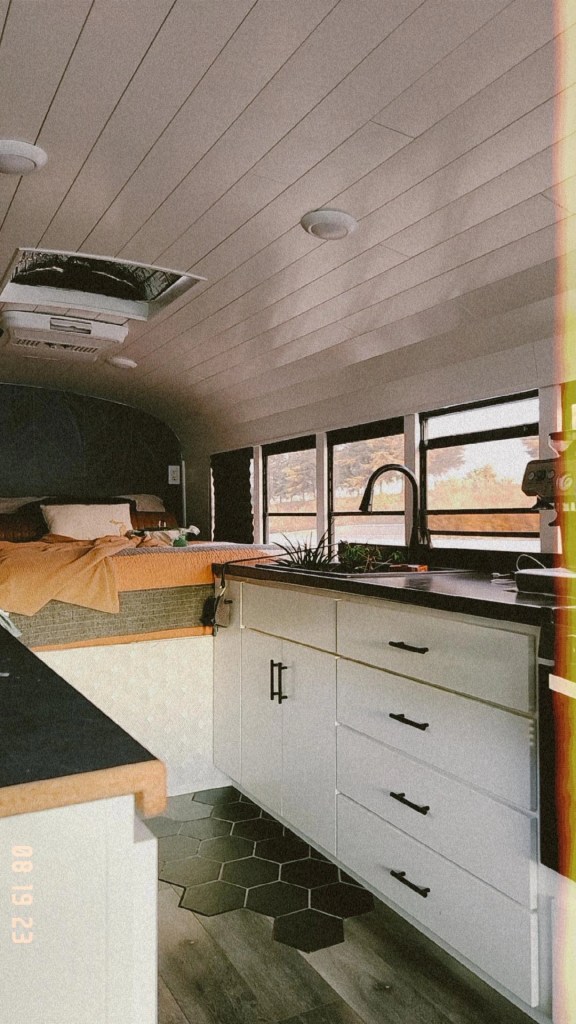 Today is a hot one in the bus. 98* outside and all we rely on is open windows so it’s just a warm, windy day in here. The couch leg is having an issue so I’ve been using our camp chair until we can get it fixed tonight. So far our plants haven’t died, although our philodendron that’s stored in the kitchen sink did lose a small leaf this morning. Our fiddle-leaf fig is finicky but made the trip from Enderby to Winton and thrived so hopefully it doesn’t choose this time to die.