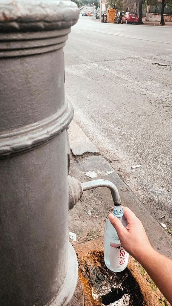 We got into Rome Termini and walked thru their insane food court admiring the pastas and salads and gelatos. Back into the sun and found a fountain to fill our water bottles.  The public fountains here are all safe to drink from and the Roman aqueducts from 2000 years ago still supply the entire city’s water from underground conduits so its quite handy.