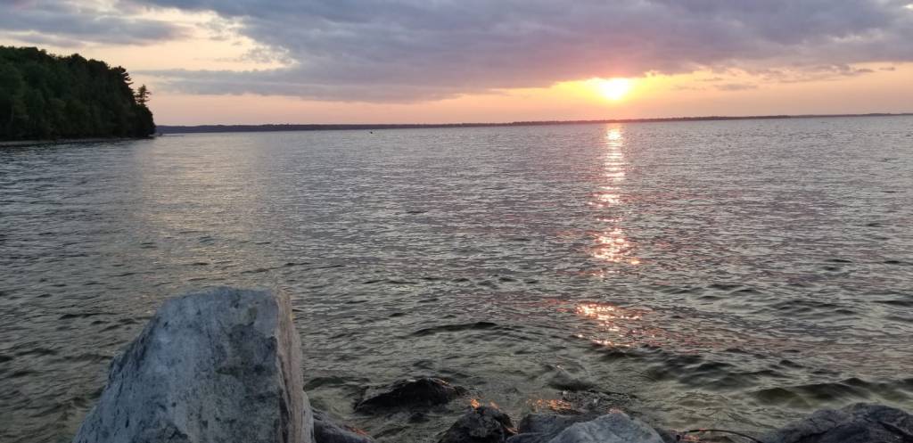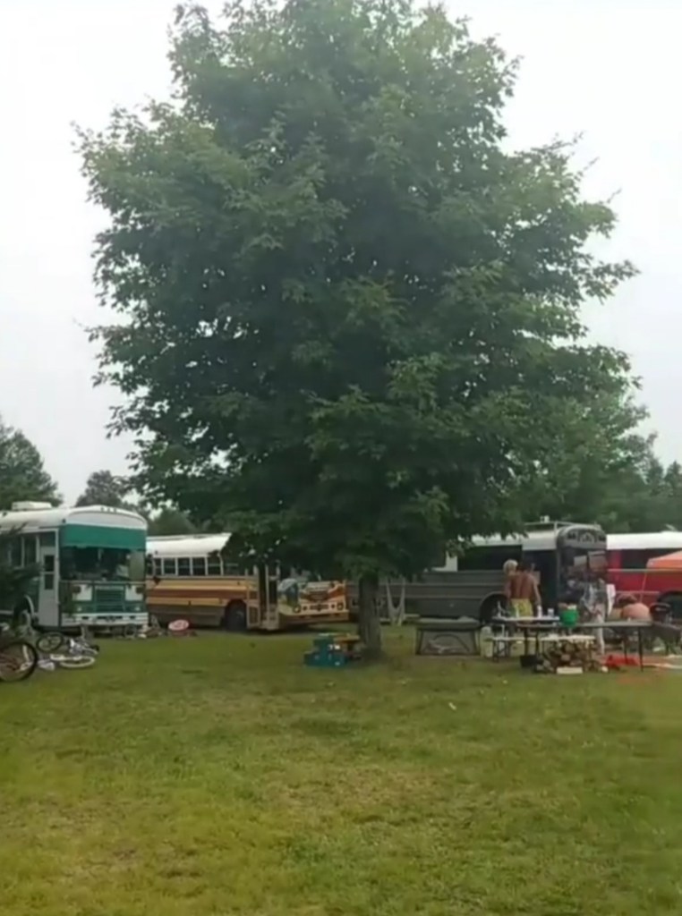 The fest was held at a specially reserved campground so we arrived there Sunday evening and got set up. When we arrive somewhere we have a 20 minute period where Morgan plugs in the bus, gets the bikes down, sets up the grey tank, and other little stuff. When we are driving, I use our kitchen sink to put all the things in that move around from our counters so when we arrive somewhere, I put our books back on the shelf, set out my plants, lay out our outdoor rug, and so on. After we’d set up, we took a bike ride out on a path surrounded by forests. Later we met our neighbors, a sweet family of four in a beautiful 40 foot bus next to ours, and then made spaghetti for supper and relaxed outside until the plague of mosquitoes drove us in. Monday we spent a good part of the day meeting new people from all over the country and getting to know them and occasionally touring their buses. We met some awesome people families and were impressed with the genius ideas we saw in other people’s bus builds. In the afternoon we rode bike to a lake somewhere out in the boonies that was quiet and sandy and warm.